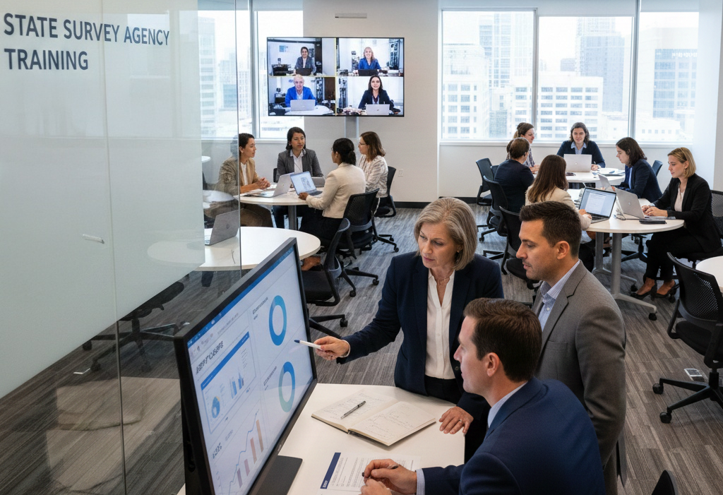 HMS provides customized, high-impact training for Federal and State Survey Agencies. Our blended learning programs, mentoring, and adaptive onboarding help staff quickly gain competency in survey activities across healthcare settings.