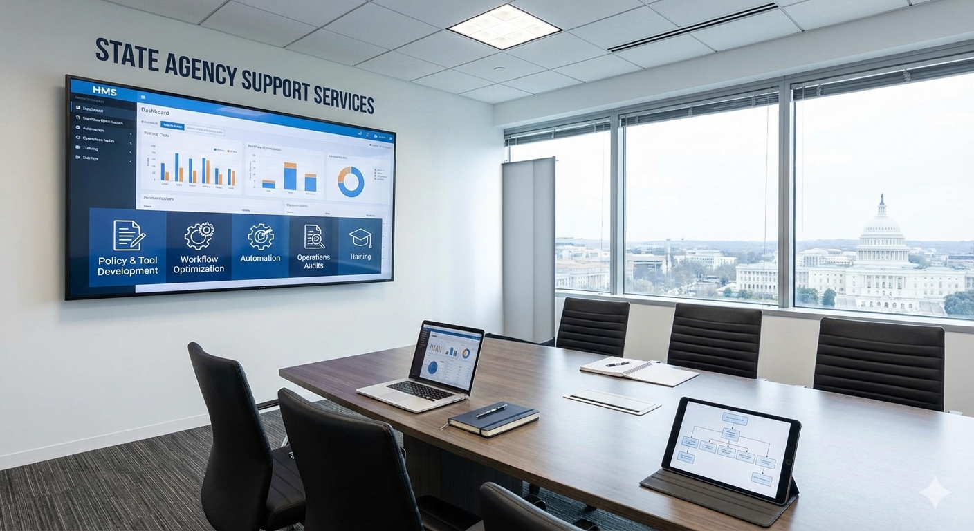 HMS provides expert support to state and federal agencies, helping improve operations, compliance, and efficiency. Our team of specialists offers tailored solutions through policy development, workflow optimization, training, and data analysis.